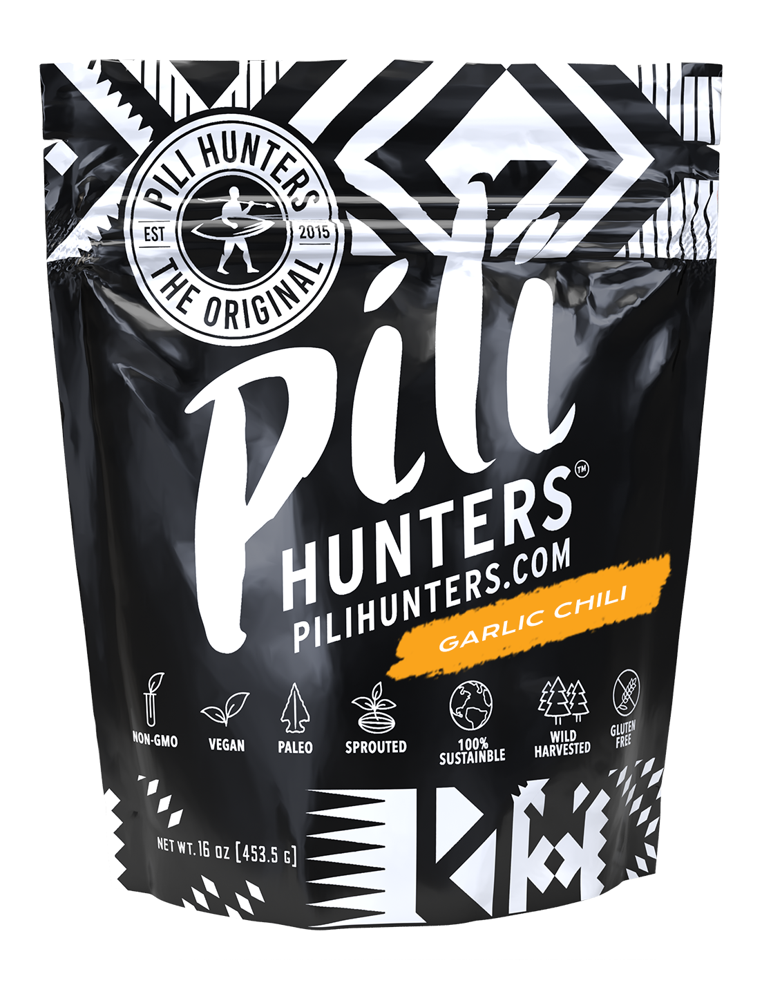 - Take our classic avocado oil fried pili nuts and a dusting of garlic and chili
