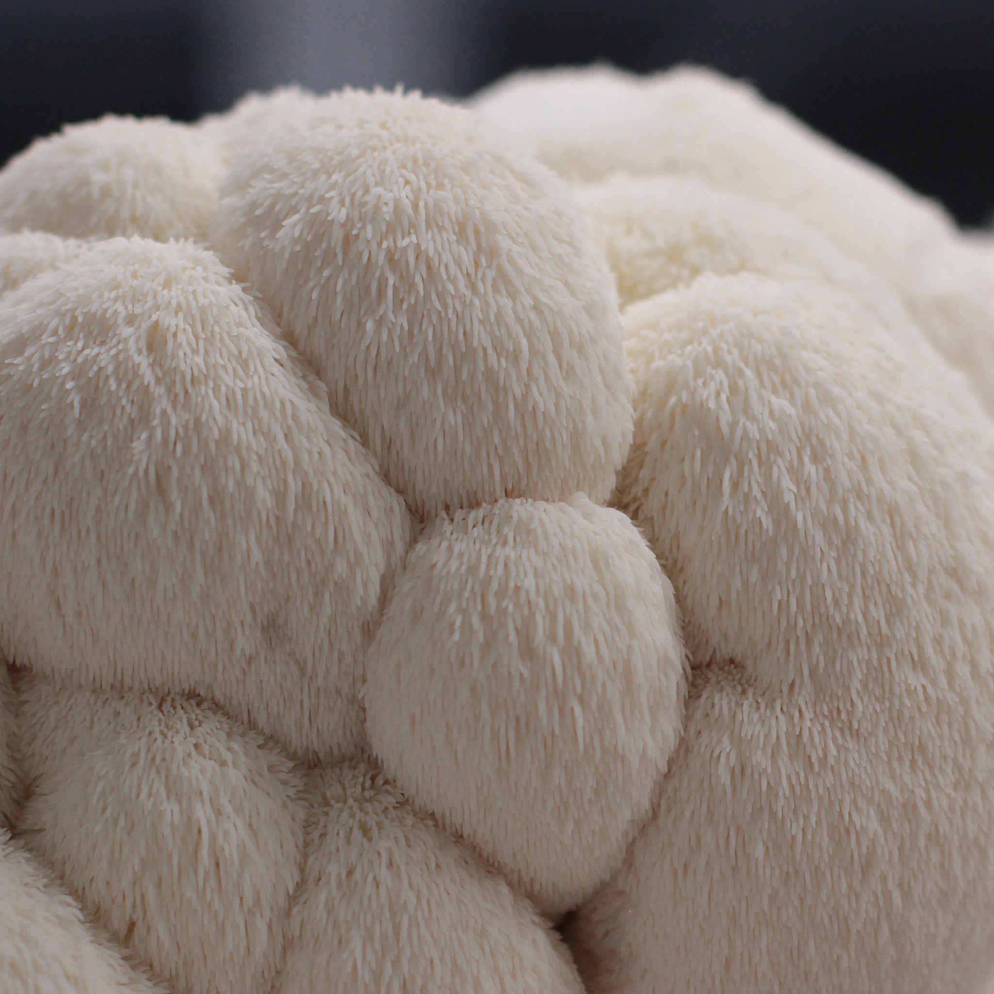 Lions Mane mushroom (Hericium erinaceus) is a striking, fluffy fungus known for its unique appearance and culinary versatility. Resembling a white pom-pom or cascading icicles, it features long, hair-like spines that give it a distinctive texture.