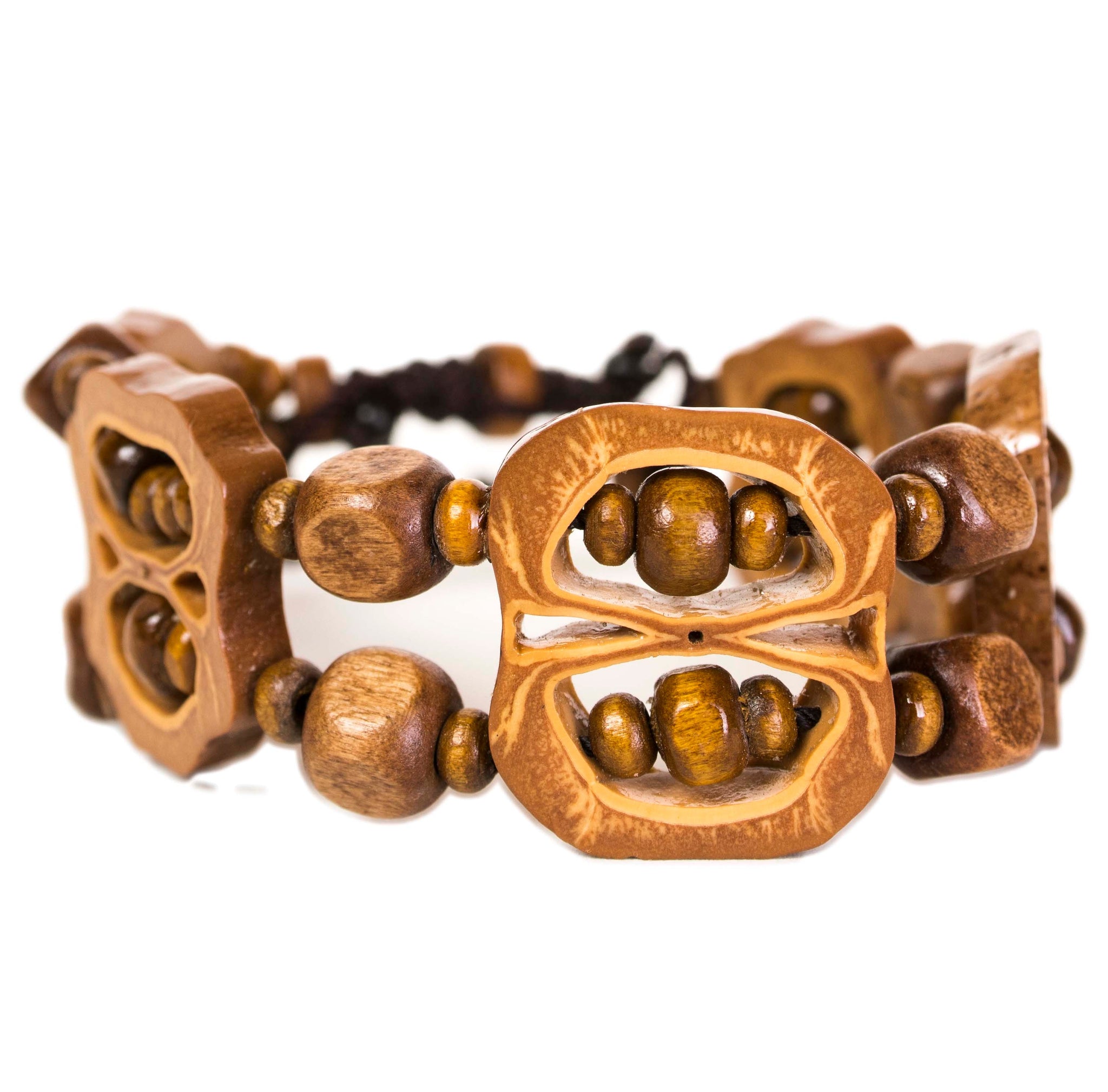 This bracelet is one-of-a-kind and handmade in the Philippines using the awesome nut you know and love! Using intricate wooden beadwork and a cross-cut of the shell the rich & buttery nut comes from, this bracelet has a warm and rich brown color.