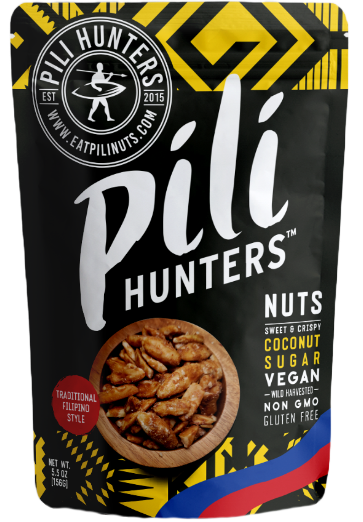 Pili Hunters' famous Coconut Oil and Himalayan Salt Pili Nuts with a sweet, crispy coating of Organic Coconut Sugar. Created with Pinoy and Fil-Am customers in mind, but everyone will love this sweet and salty treat.
